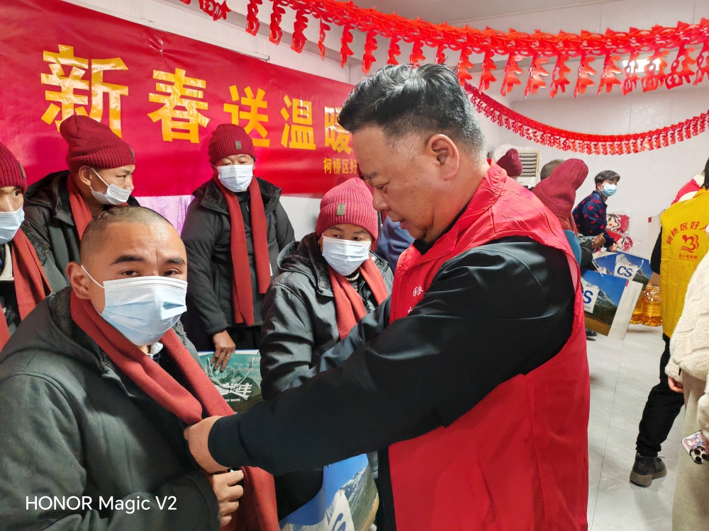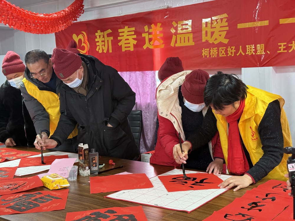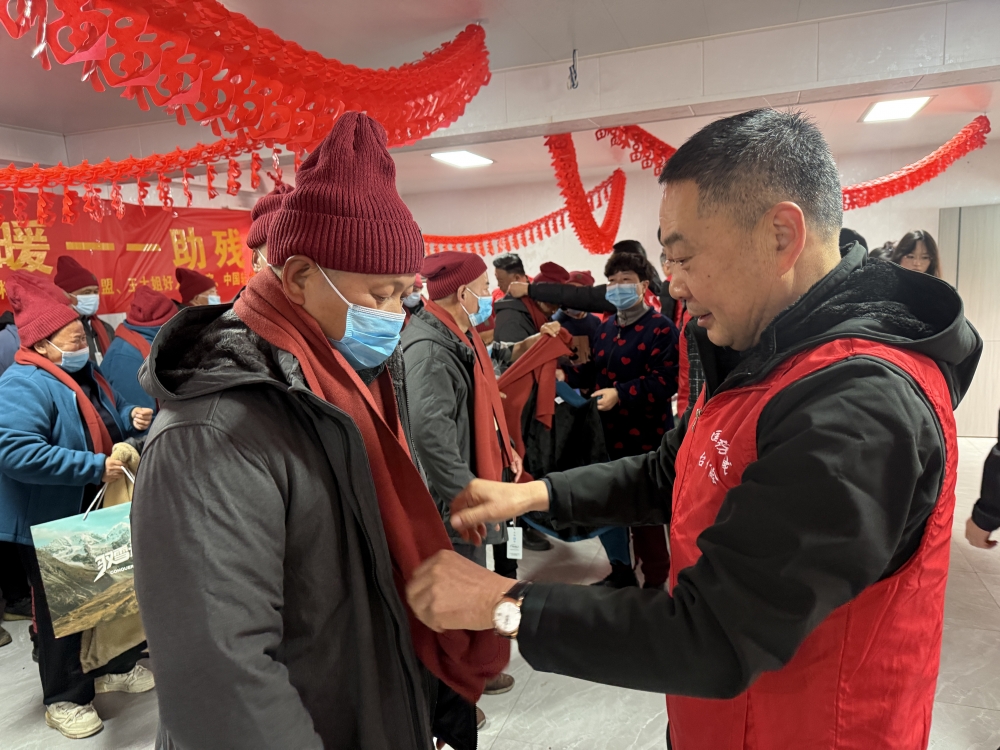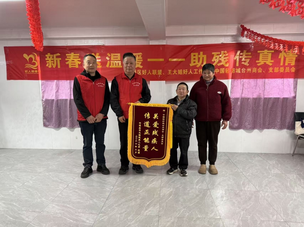 柯桥区好人联盟联合王大姐好人工作室、中国轻纺城台州商会、支部委员会为平水残疾人之家送去福田爱心大米、油、围巾,给他们写新春对联,并邀请了医生给残疾人做血压测量等健康检查。