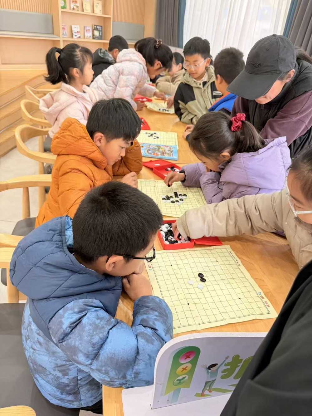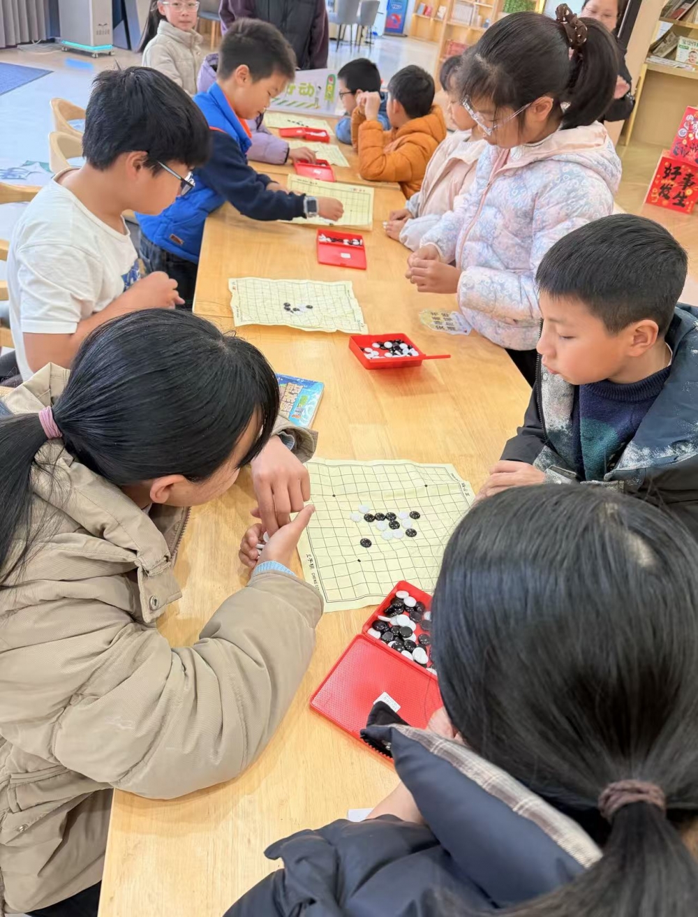 合心村五子棋益智活动在温馨的村级活动室顺利开展,一群小学生围坐长桌,专注投入黑白棋子的对弈之中。孩子们身着各色冬装,或托腮凝神思考落子策略,或指尖轻捏棋子斟酌布局,神情认真投入,棋盘上交错的棋子见证着他们的逻辑博弈。 活动现场,志愿者们全程陪伴指导,耐心为孩子们讲解规则、拆解棋局,在传递棋艺技巧的同时,也引导孩子们养成尊重对手、文明对弈的良好礼仪。本次活动既锻炼了孩子们的专注力与逻辑思维,也丰富了乡村少年的课余生活,让孩子们在轻松友好的氛围中感受棋类魅力,在竞技中收获成长,进一步营造了合心村互助友爱的文