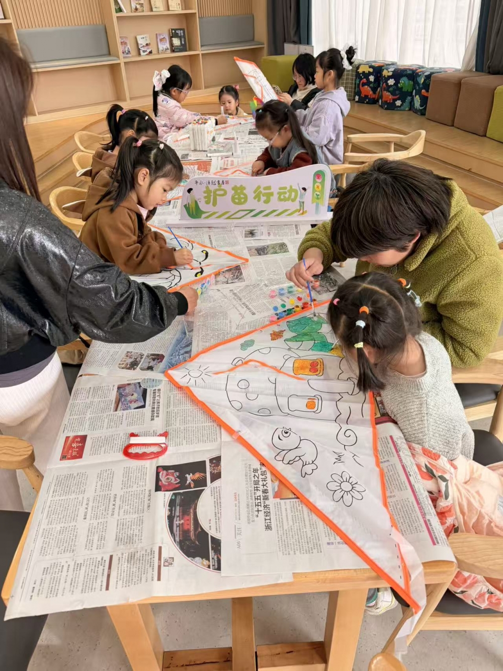 以“护苗行动”为核心,聚焦未成年人成长关怀,结合春季民俗特色,开展亲子手绘风筝主题活动,丰富村内儿童课余生活,促进亲子互动。 现场提供空白风筝、彩绘笔等材料,家长陪同孩子共同手绘创作,孩子们自主设计雄鹰、蘑菇屋、卡通形象等个性化图案。 ◦ 亲子协作完成风筝绘制,在动手实践中培养儿童创造力、专注力,增进家庭情感联结。 ◦ 落实“护苗”关爱行动,为村内儿童打造趣味成长体验,助力未成年人健康成长。 ◦ 丰富乡村文化生活,营造亲子同乐、邻里和睦的乡村氛围,彰显合心村“同心共乐”的文化特色