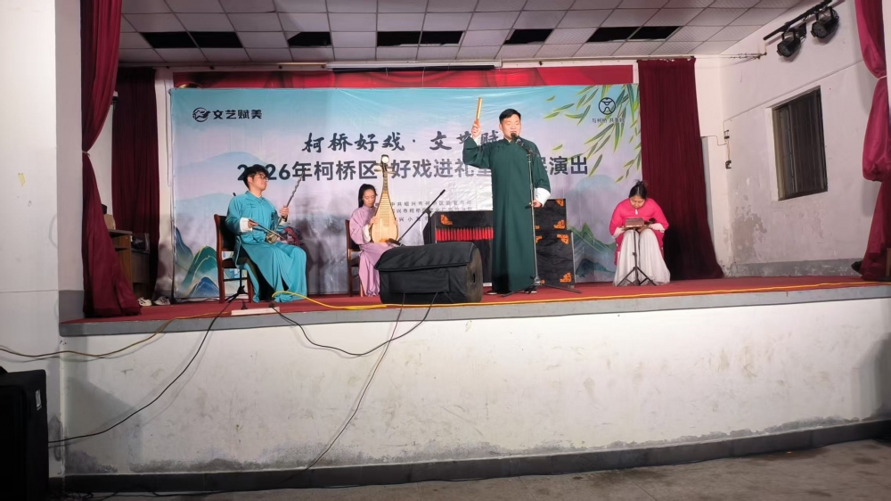 为深入推进“文艺赋美”工程与“好戏进礼堂”文化惠民品牌建设,绍兴市柯桥区依托基层文化礼堂阵地,精心组织开展绍兴莲花落专场惠民演出活动。 作为首批国家级非物质文化遗产,绍兴莲花落以地道的绍兴方言、幽默诙谐的唱腔和生动通俗的唱词,被誉为“古越大地的乡音瑰宝”。演出中,艺术家们身着传统长衫,手持折扇与三巧板,运用“说、唱、噱、演”的精湛技艺,将《龙凤花烛》《金玉蝉》《艾大久闯祸》等经典曲目娓娓道来。 现场观众掌声连连,邻里乡亲在熟悉的乡音中感受传统曲艺的魅力。此次活动不仅将高品质的戏曲艺术送到了村民“家门口