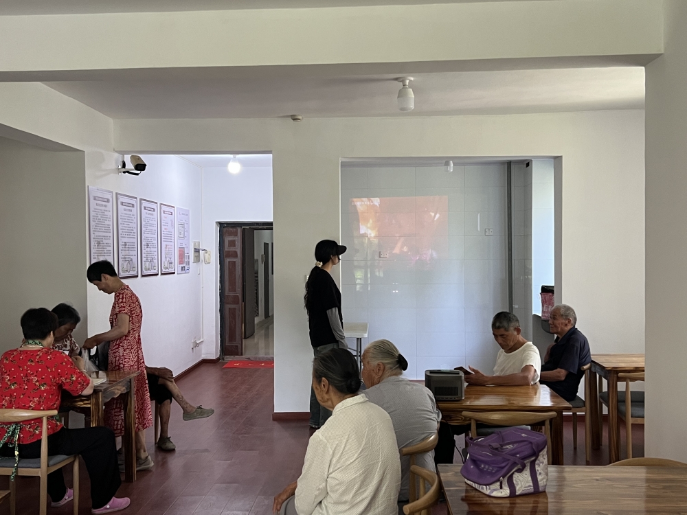 在老年活动室进行爱国主义宣教活动,采用视频播放和人员讲解结合的方式向居民宣传爱国主义,社会核心价值观等内容。