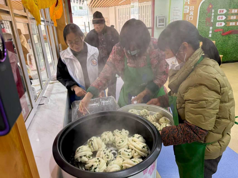 为给辖区老人提供实实在在的关怀与帮助,安昌社区新时代文明实践站开展“慢享指尖趣,共品花卷甜”志愿活动。