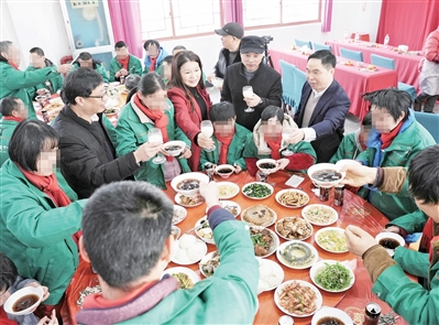 2月12日,齐贤街道残疾人之家、雅博残疾人庇护中心内暖意融融、笑声不断。区残联、浙江嘉华印染有限公司、民建柯桥区基层委等爱心企业和爱心单位来到这里,为40余位残障人士送上热腾腾的“爱心年夜饭”和新春慰问礼包。这项坚持了8年的爱心活动,让生活在这里的残障人士感受到了浓浓年味和家的温暖。