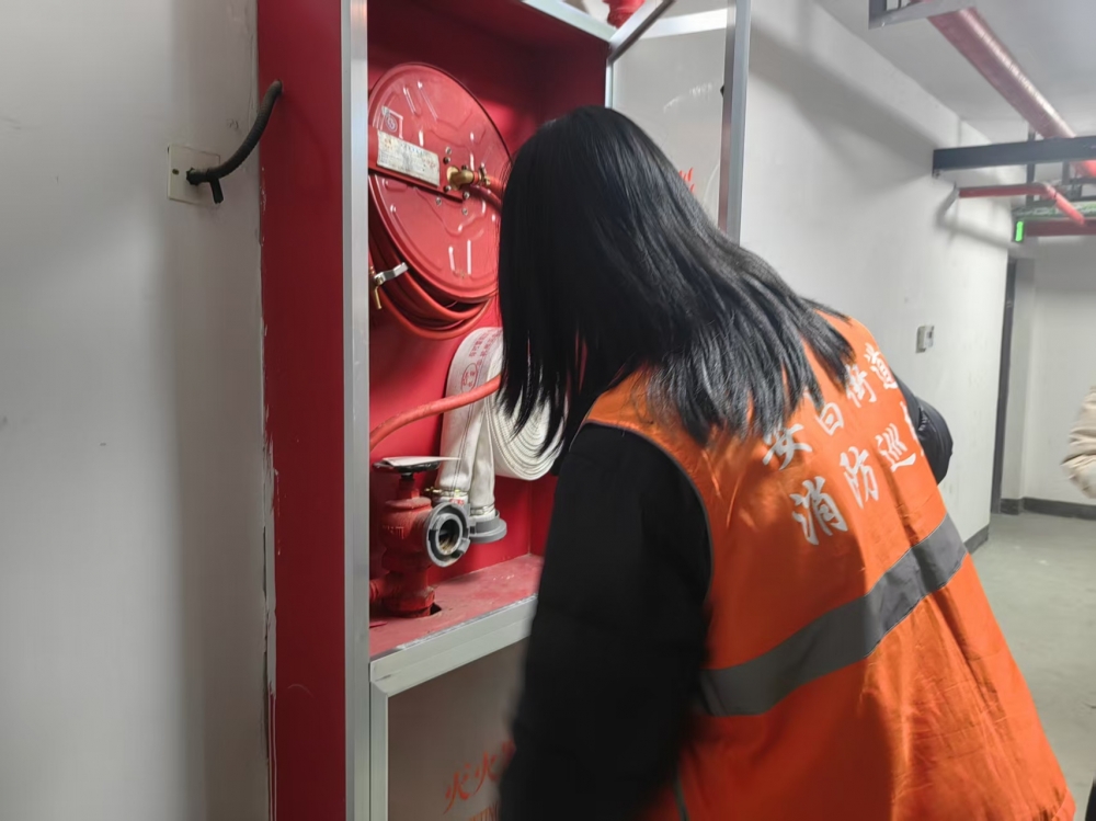 东昌社区志愿者积极参与高层住宅小区消防设施检查,为居民日常安全提供有利保障。
